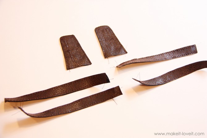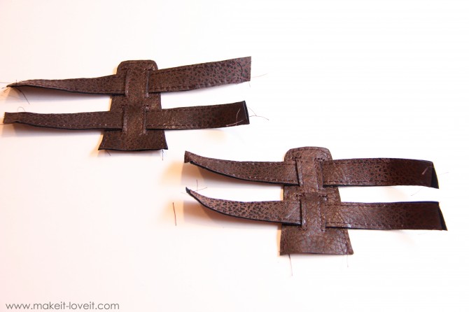 Em seguida, coloque suas tiras através das fendas para ambas as partes principais.